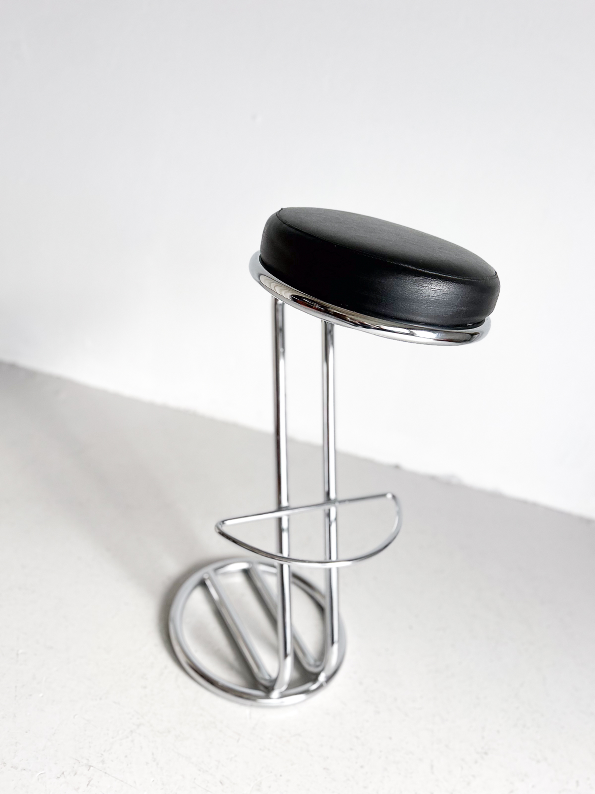 Krómaður barstóll með svörtu leðursæti