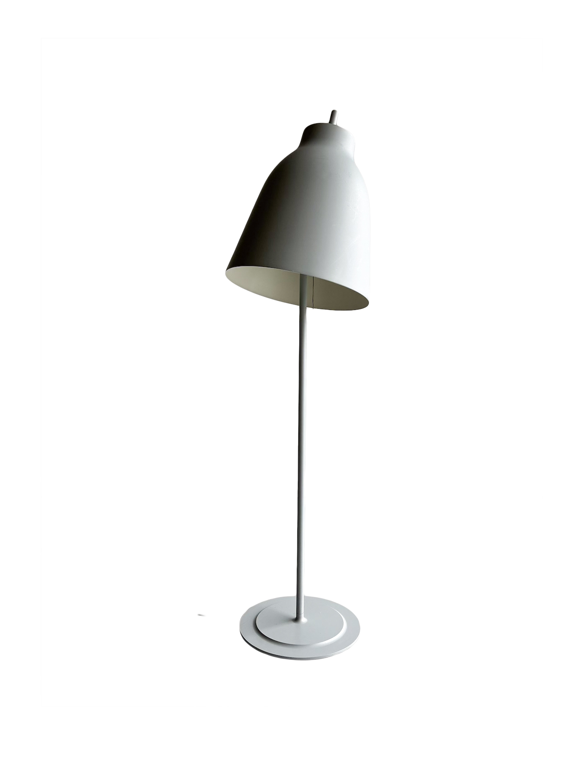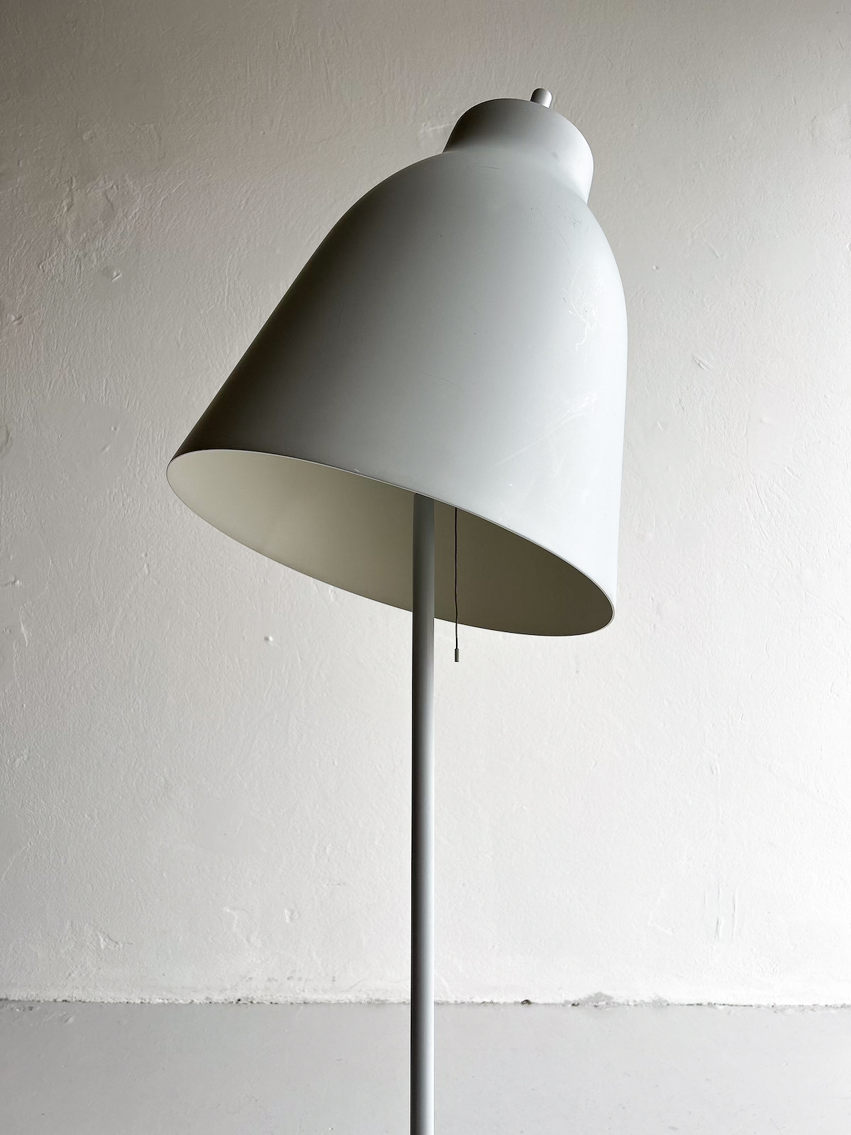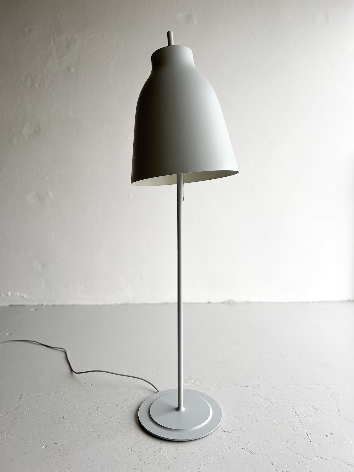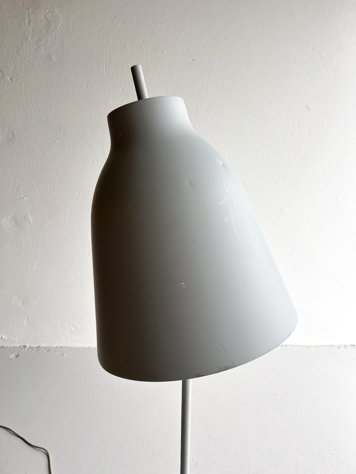 Vandaður gólflampi eftir Cecilie Manz og framleiddur af Fritz Hansen. Lampinn hefur stillanlegan skerm svo hægt er að beina birtunni eftir þörfum. Lampinn er úr áli með mattgrárri áferð. Á einum fleti á skerminum eru smávægilegar rispur og dæld, en auðvelt er að snúa þeim hluta frá svo þær sjáist ekki. (sjá mynd)