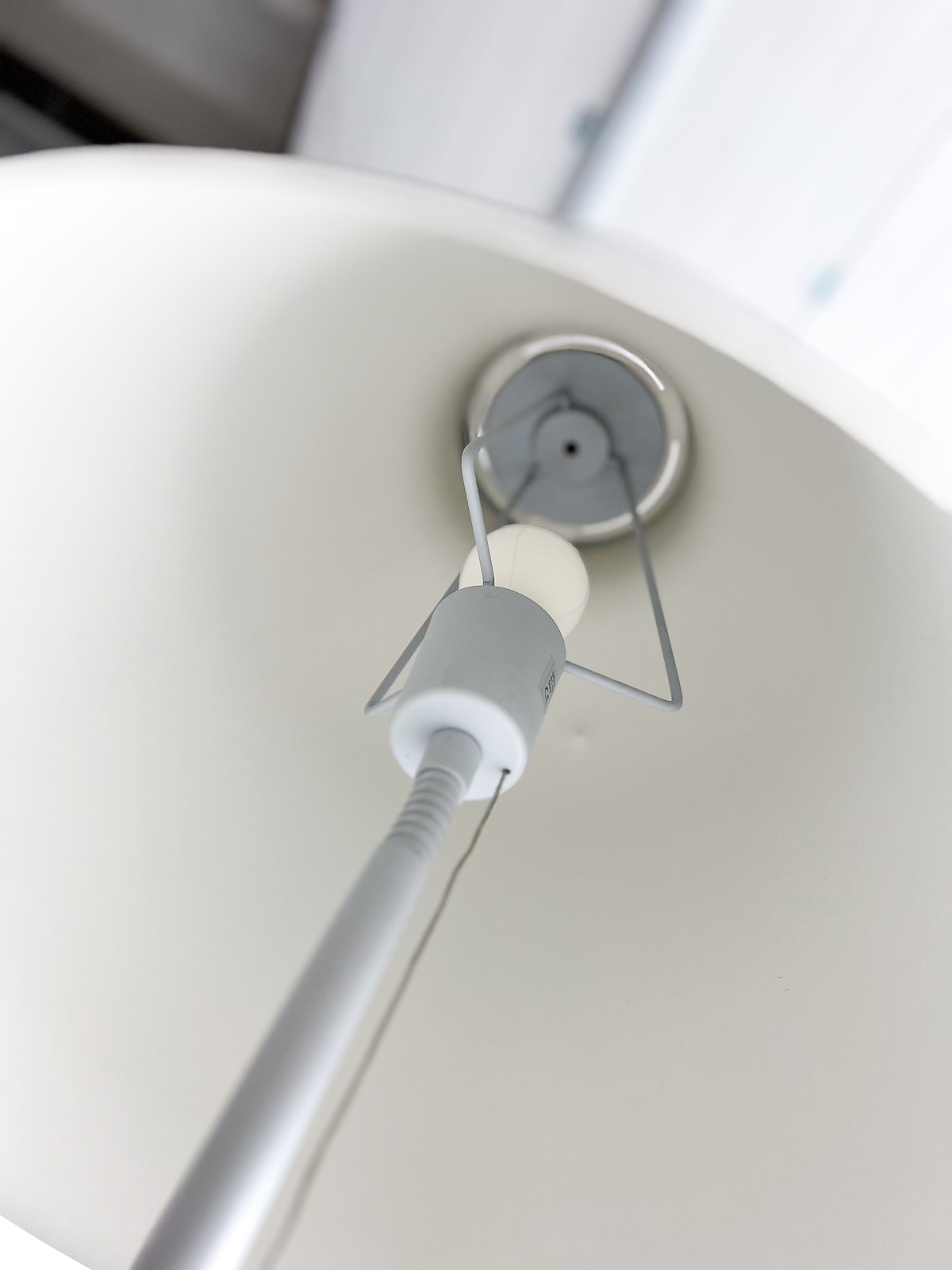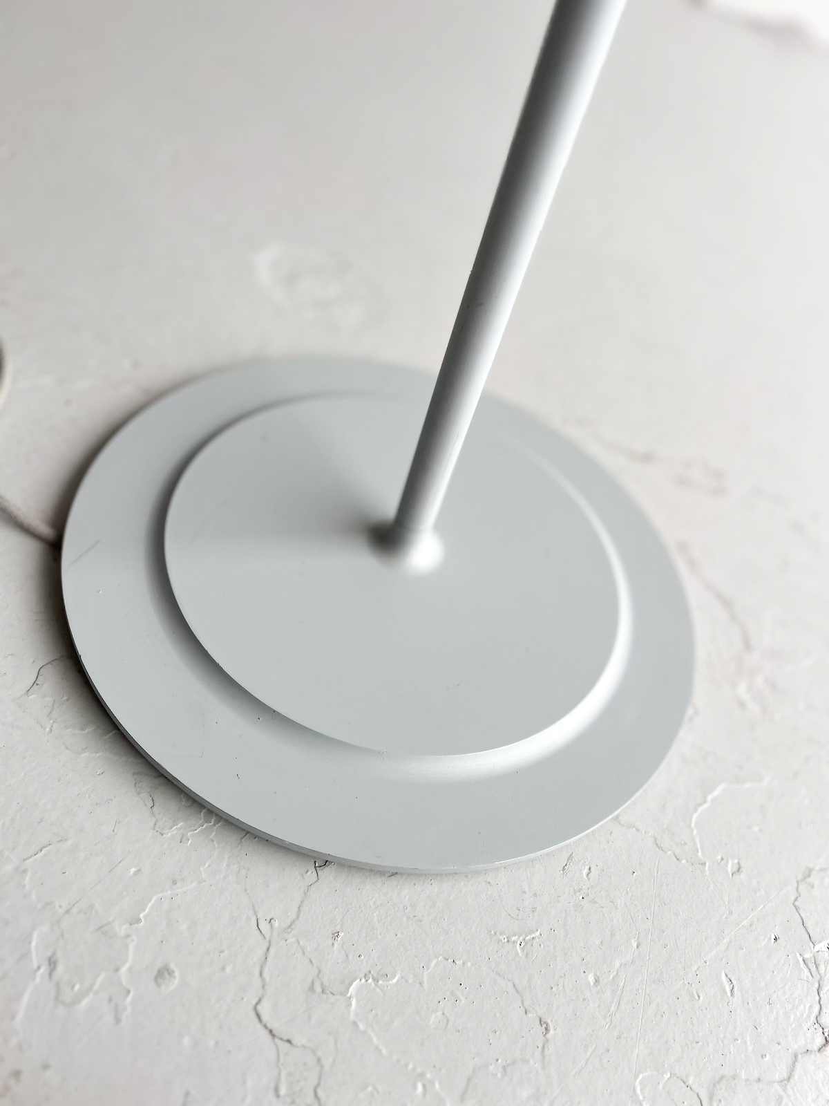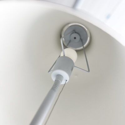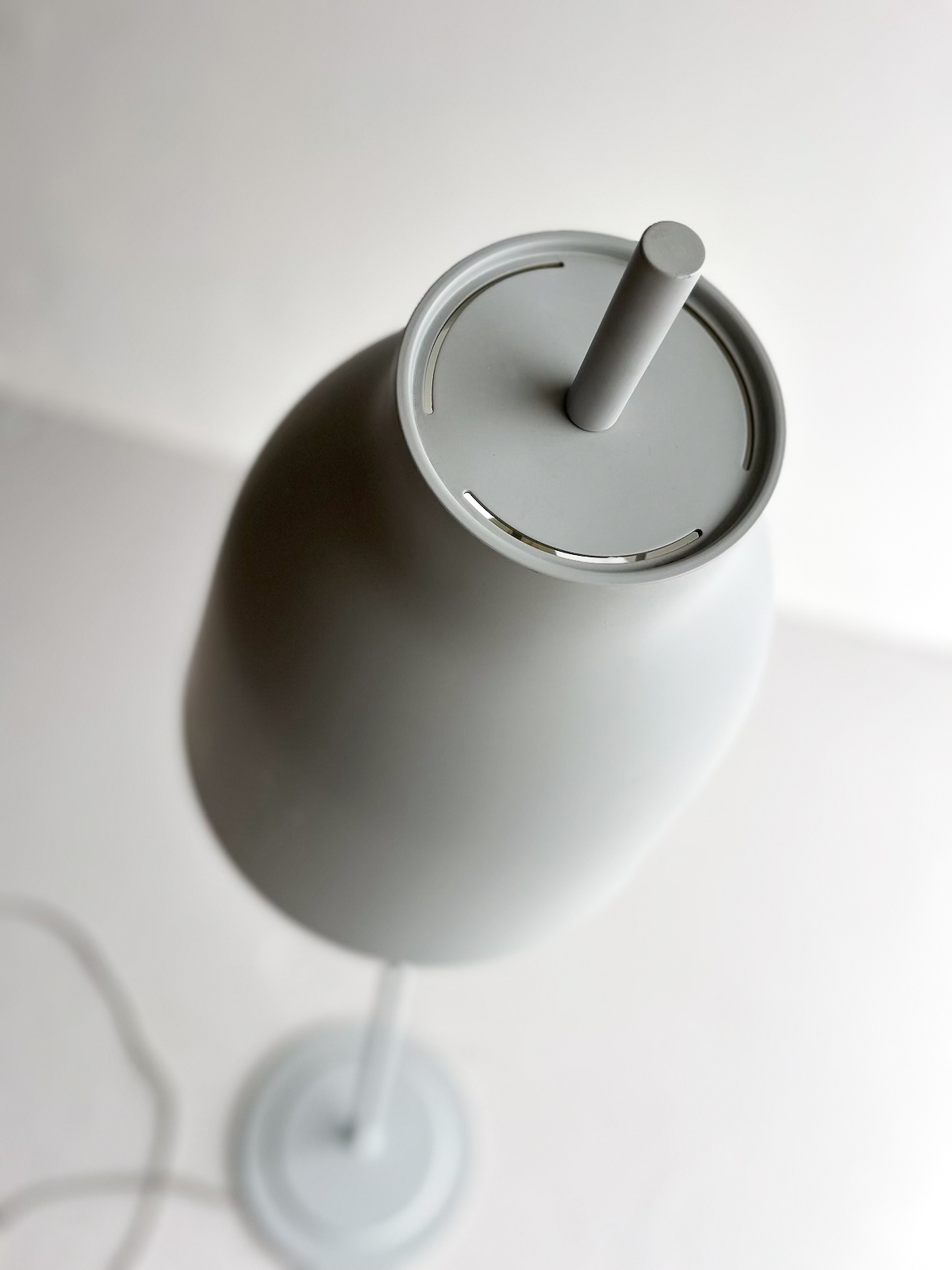 Vandaður gólflampi eftir Cecilie Manz og framleiddur af Fritz Hansen. Lampinn hefur stillanlegan skerm svo hægt er að beina birtunni eftir þörfum. Lampinn er úr áli með mattgrárri áferð. Á einum fleti á skerminum eru smávægilegar rispur og dæld, en auðvelt er að snúa þeim hluta frá svo þær sjáist ekki. (sjá mynd)