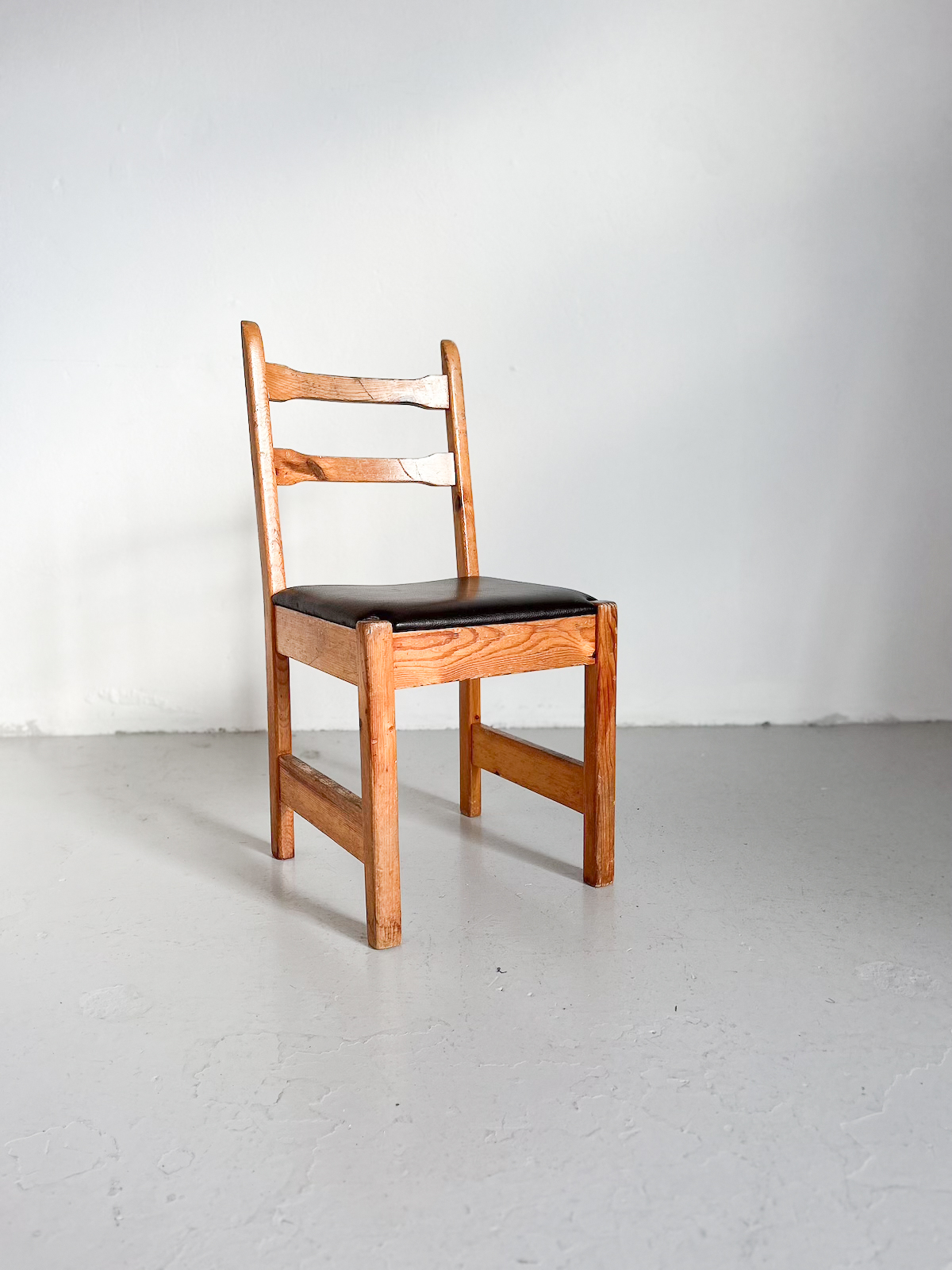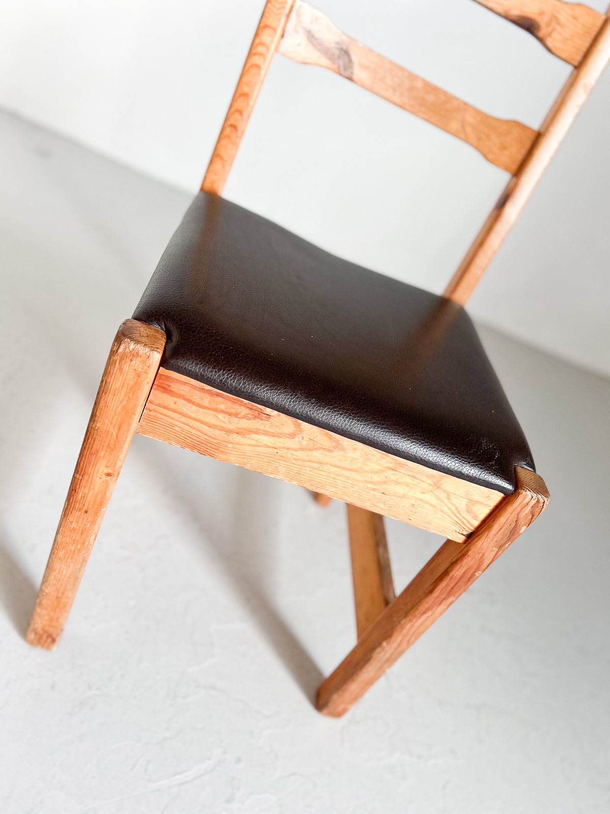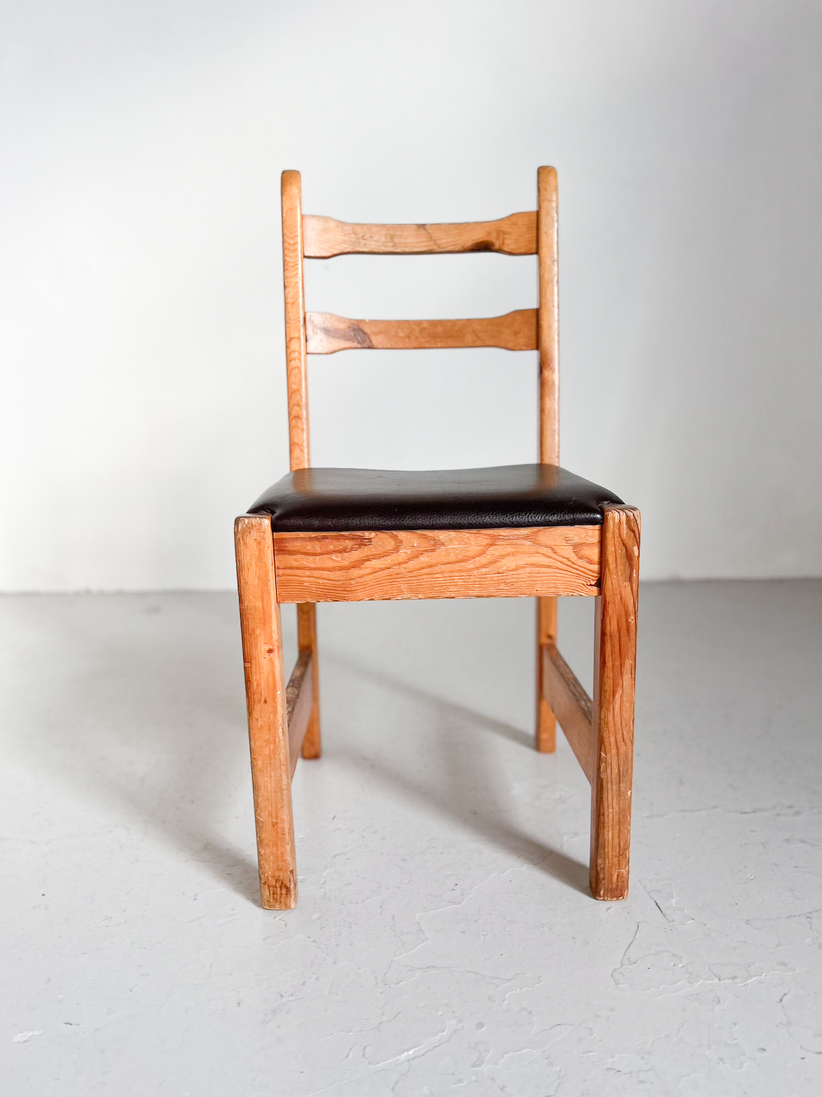Fallegur vintage furustóll með brúnni leðursessu.