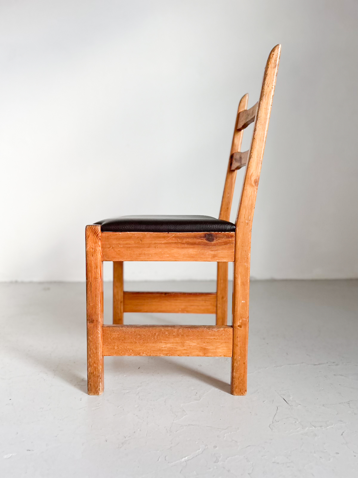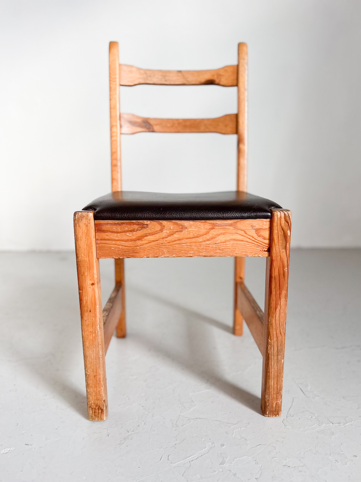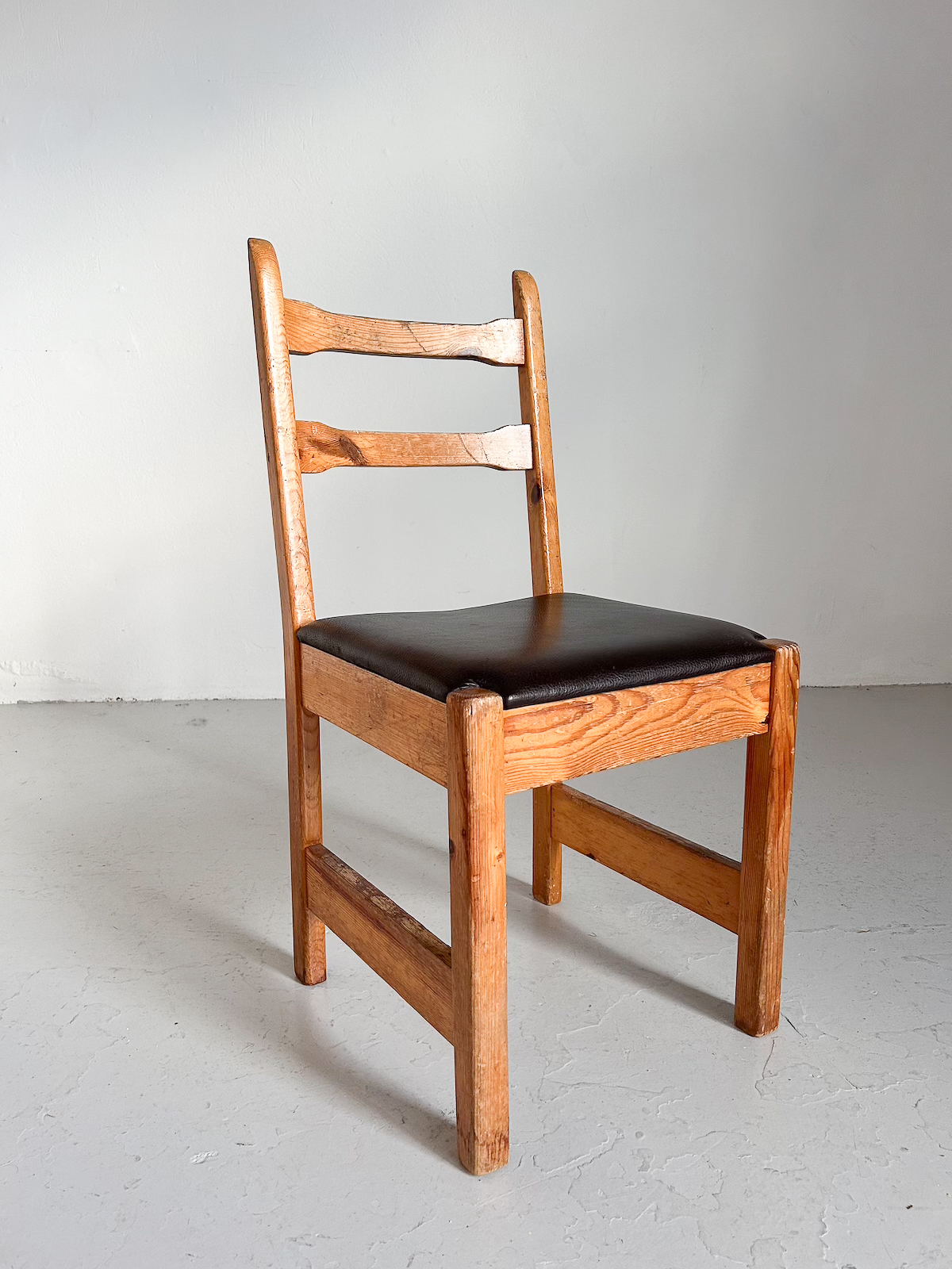 Fallegur vintage furustóll með brúnni leðursessu.