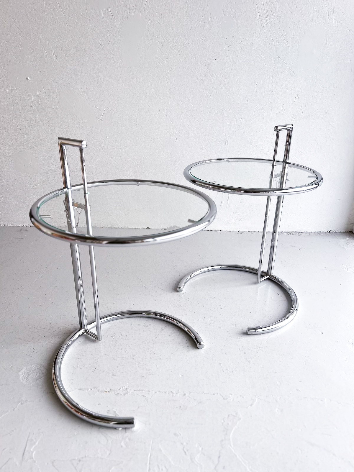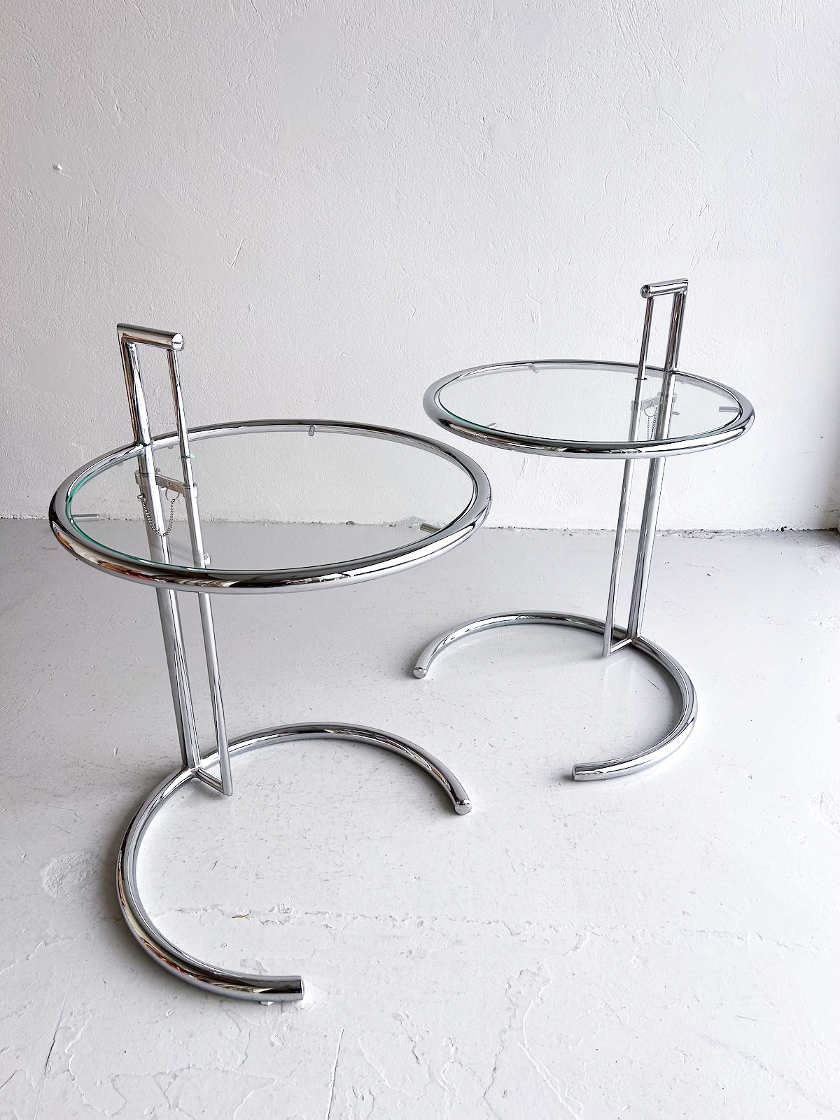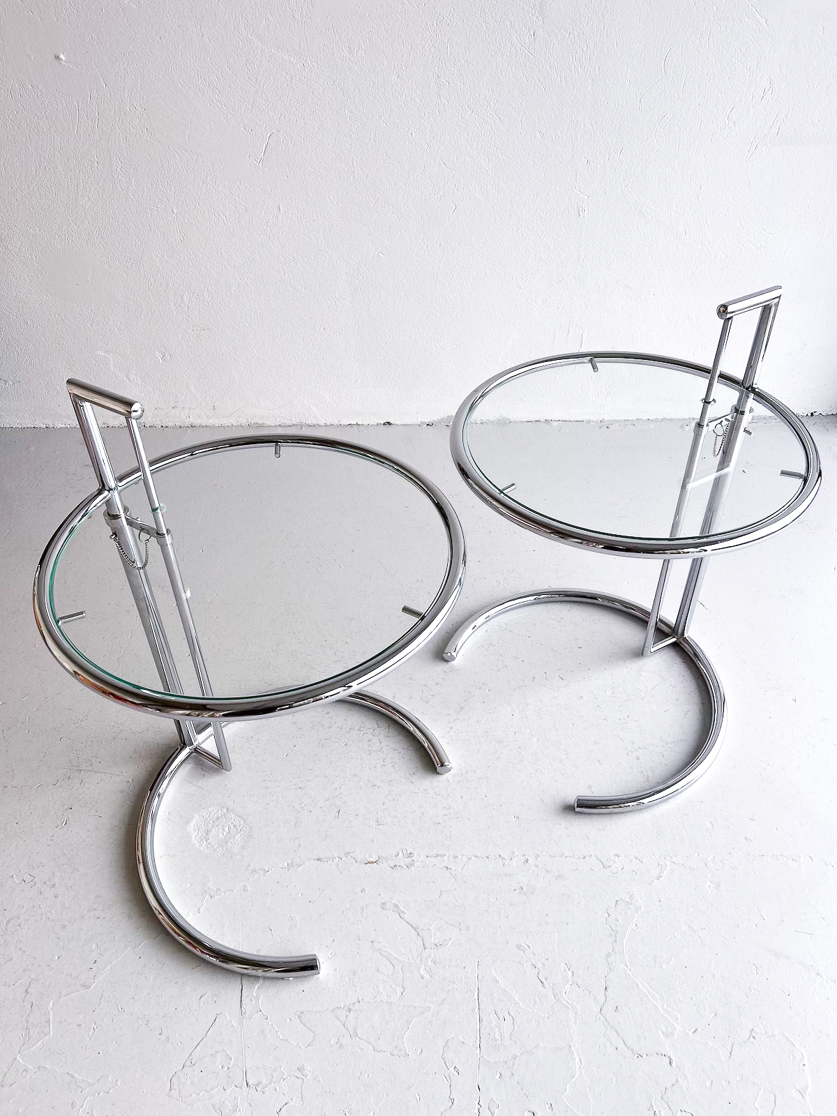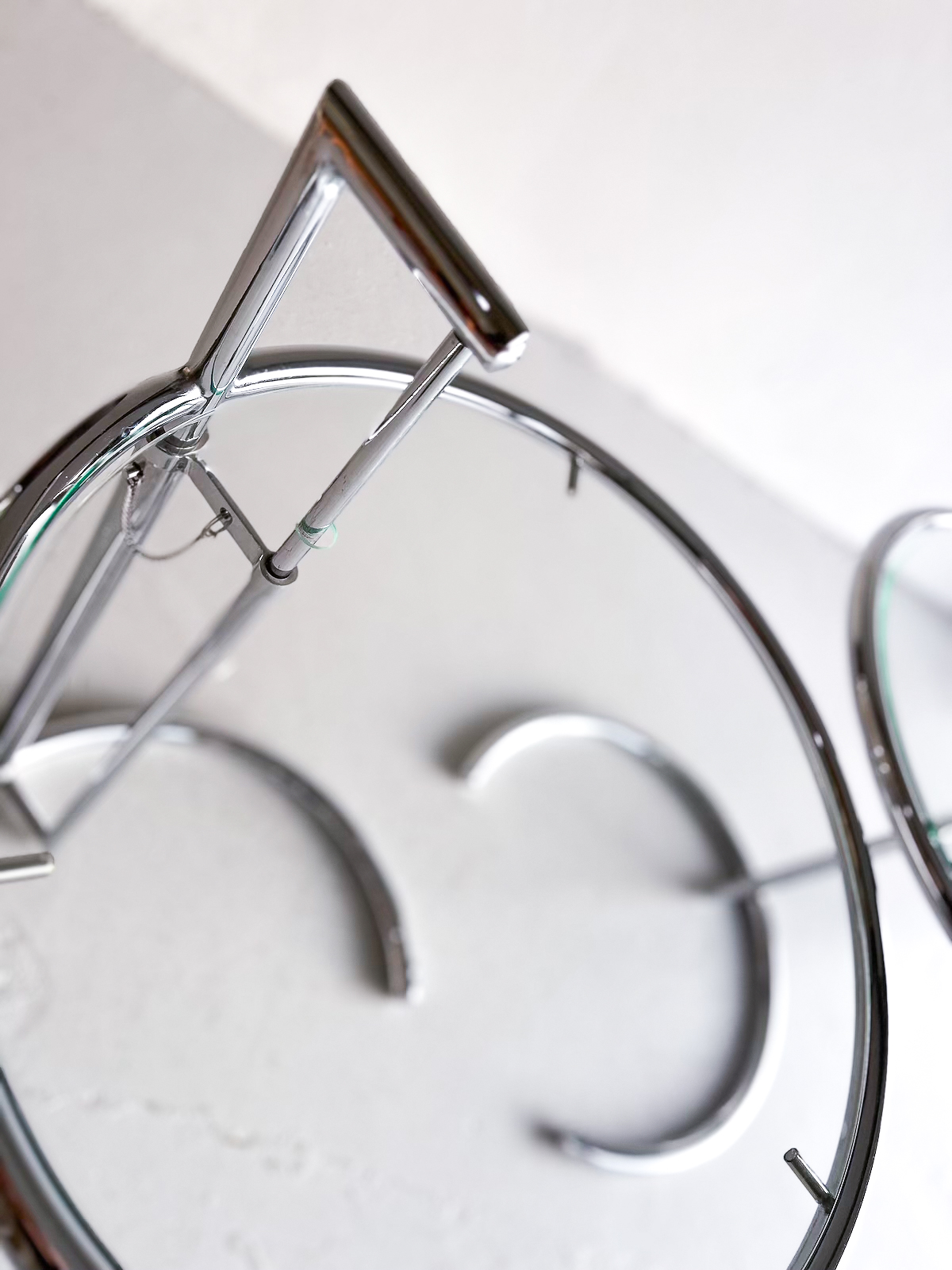 Vandað borð með krómgrind og glerplötu. Hægt að hækka og lækka eftir þörfum.