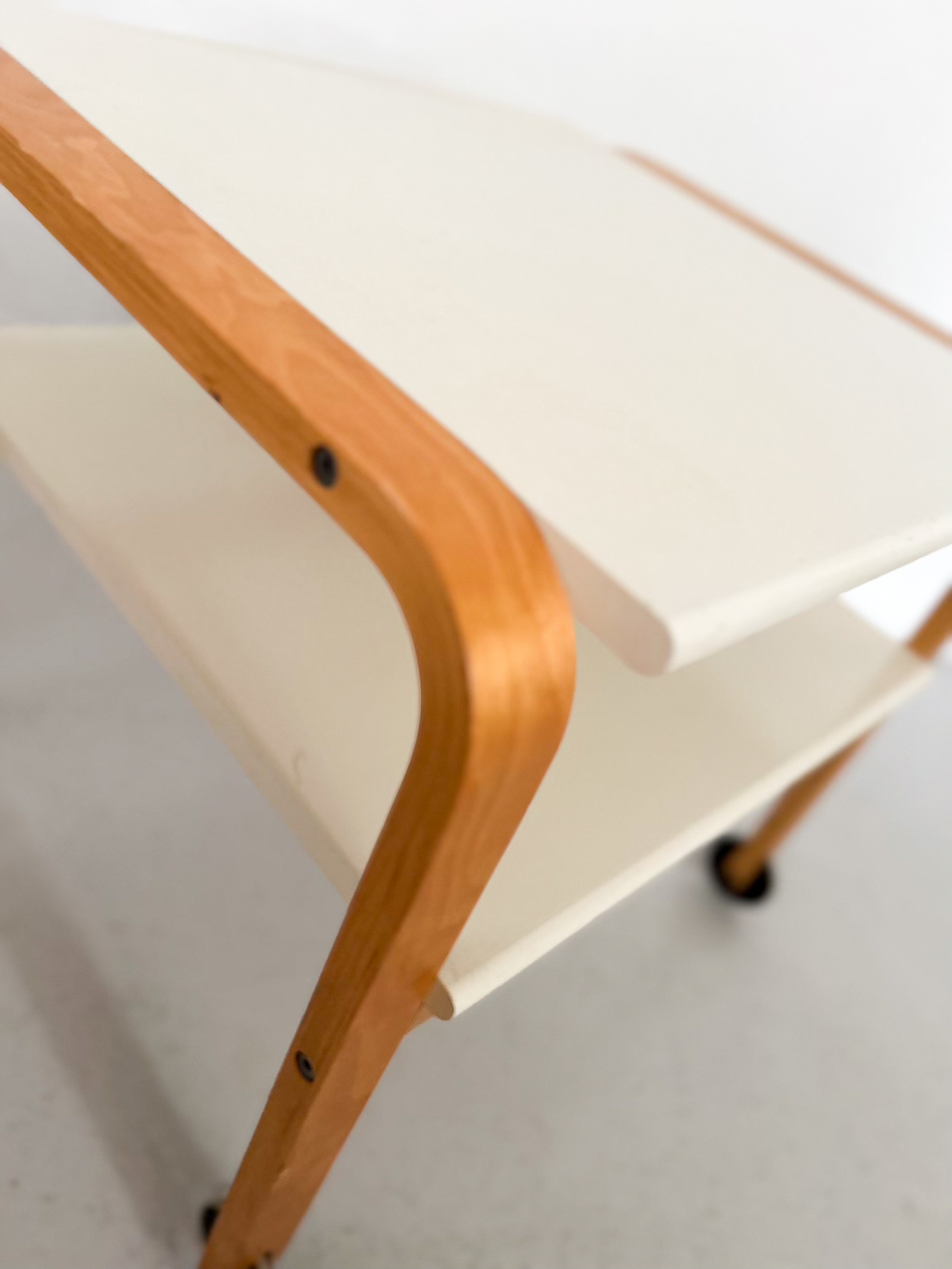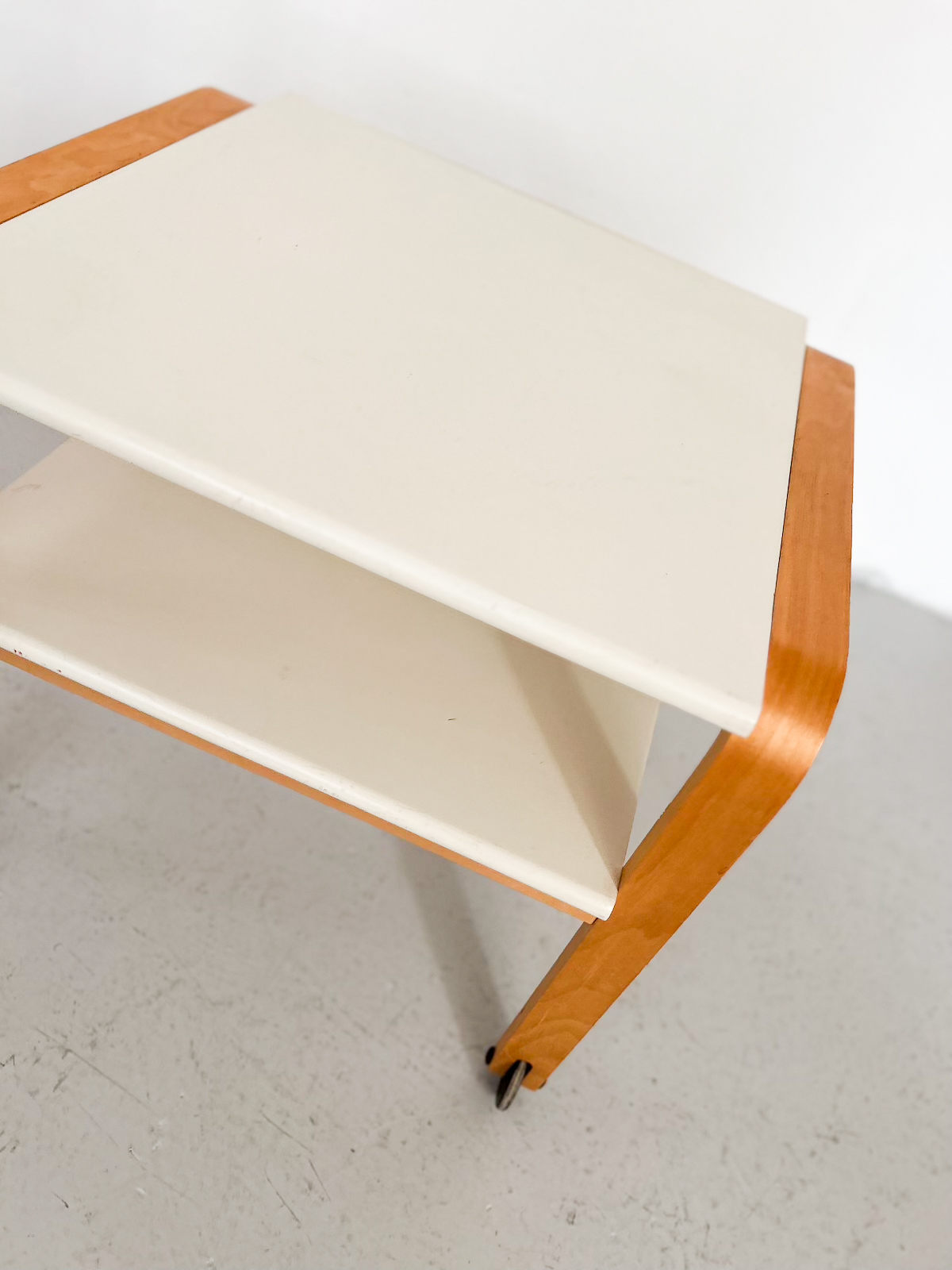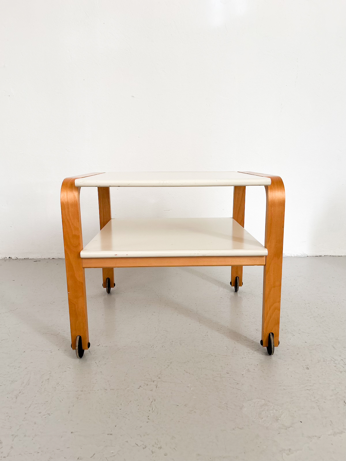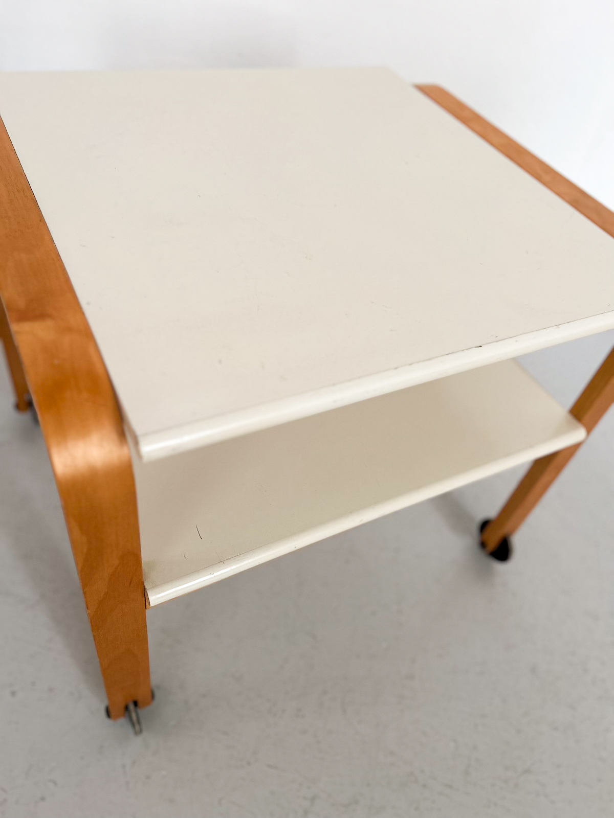 Fallegt hjólaborð, hefur aðeins kvarnað úr einu horni á hvítri plötu sem ber þó lítið á.