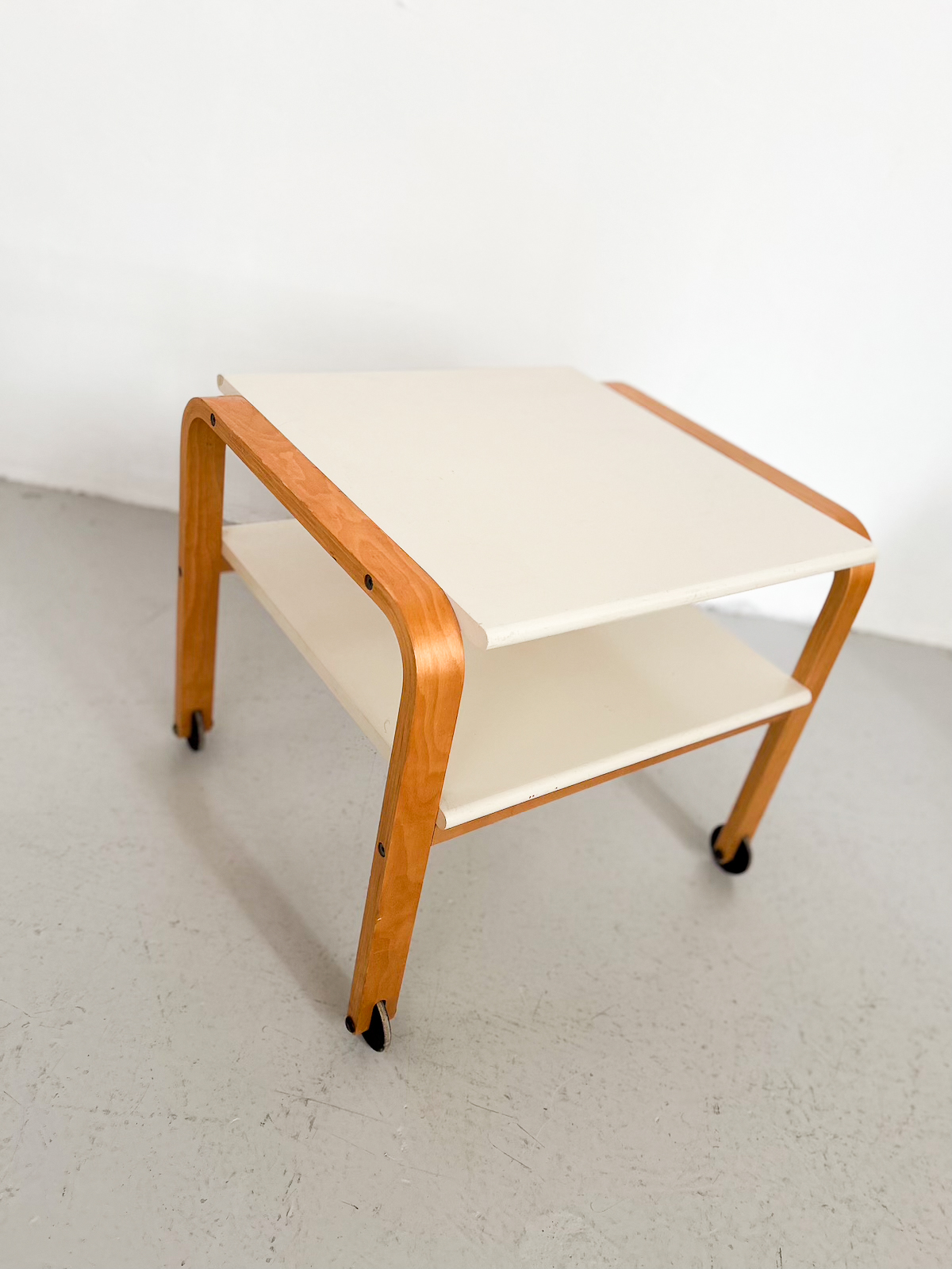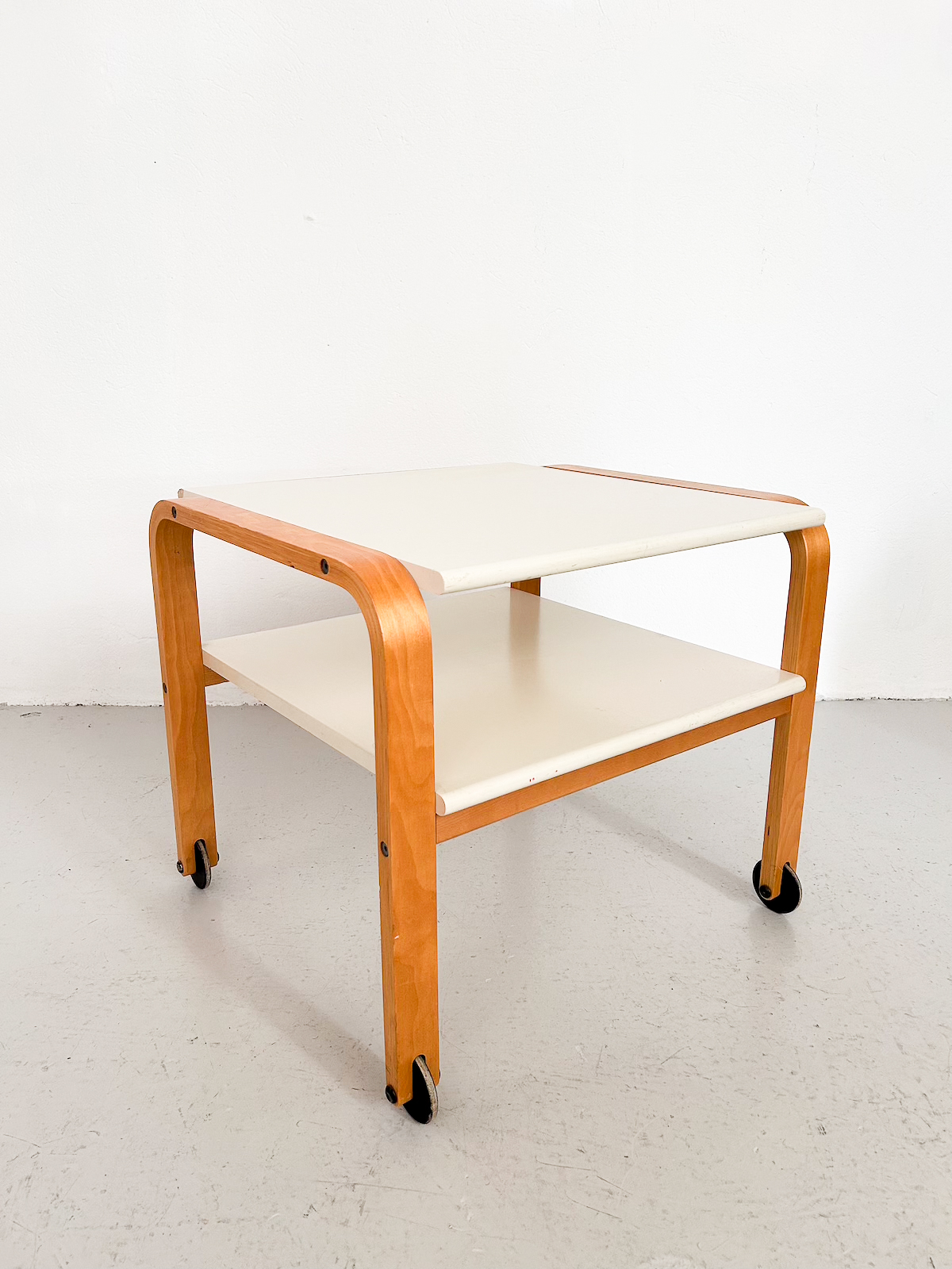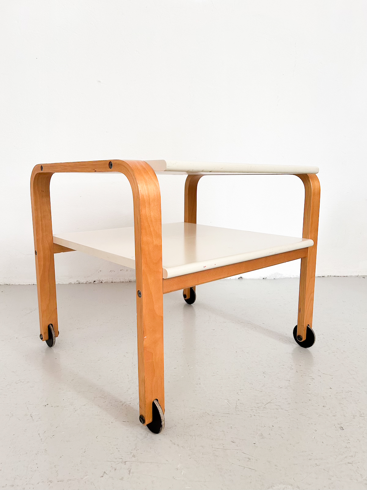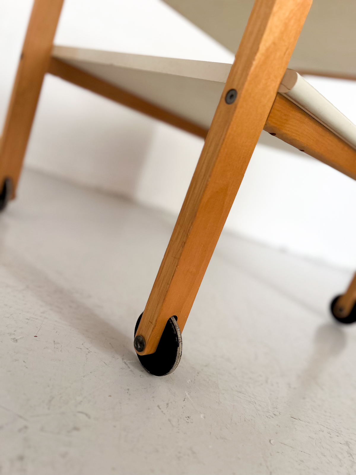 Fallegt hjólaborð, hefur aðeins kvarnað úr einu horni á hvítri plötu sem ber þó lítið á.