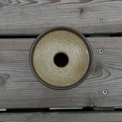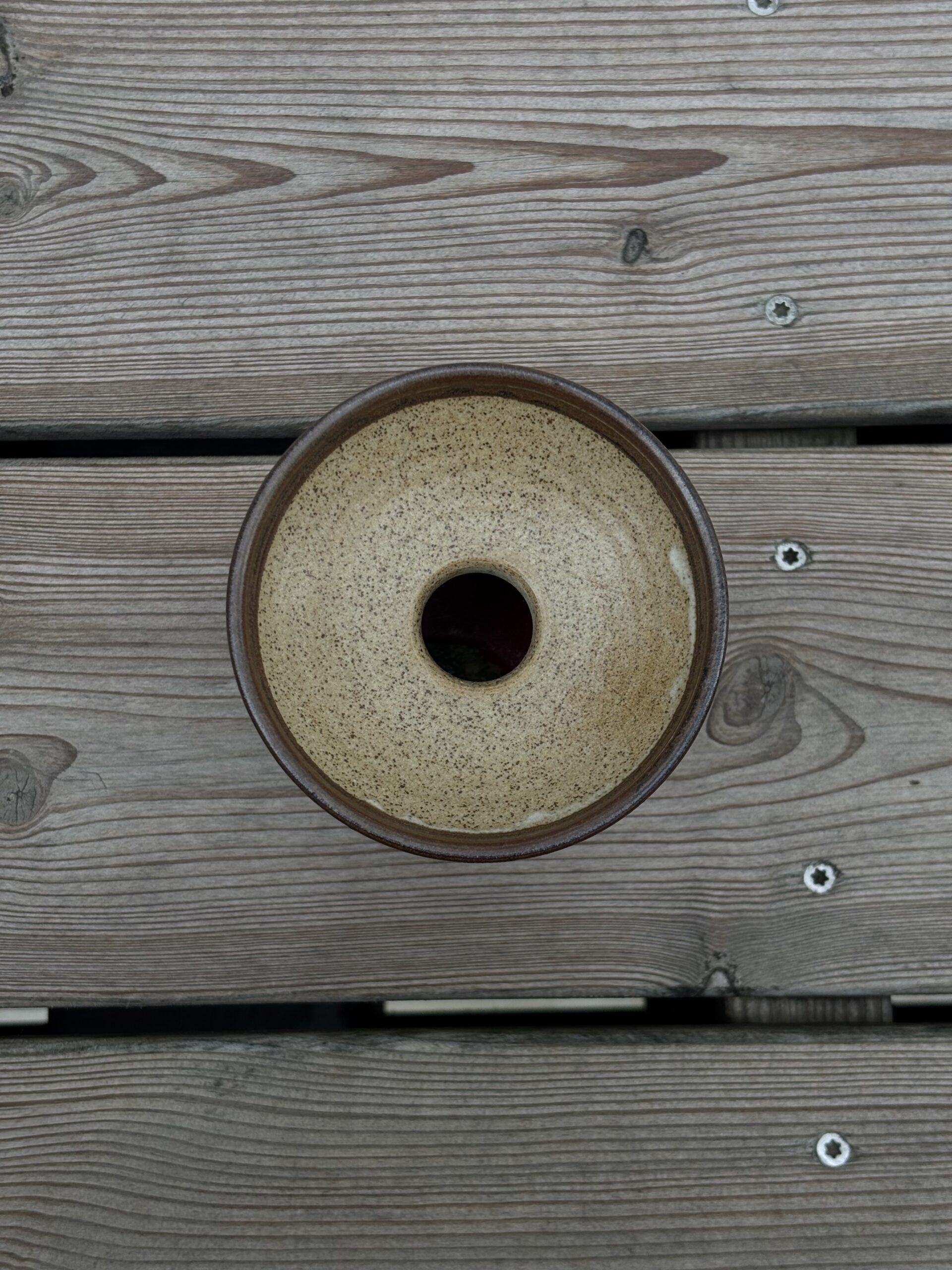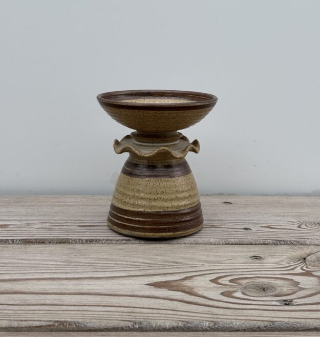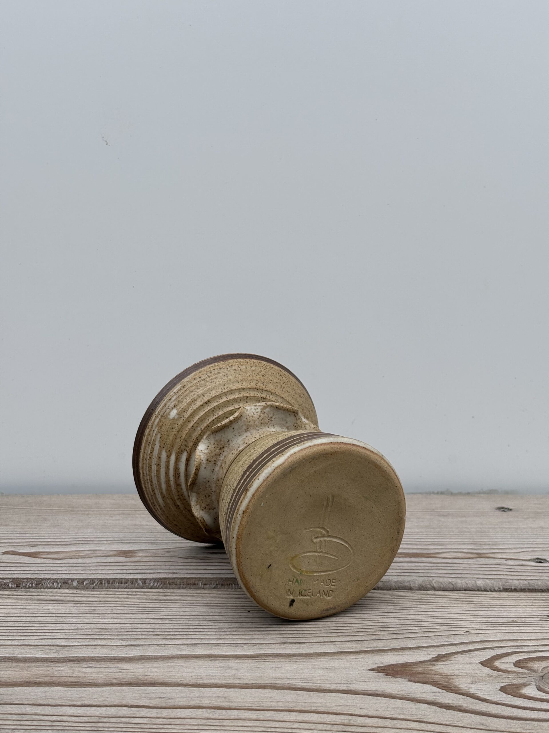 Einstakur og fallegur, drapplitaður og brúnn, kertastjaki/vasi eftir Helga Björgvinsson.