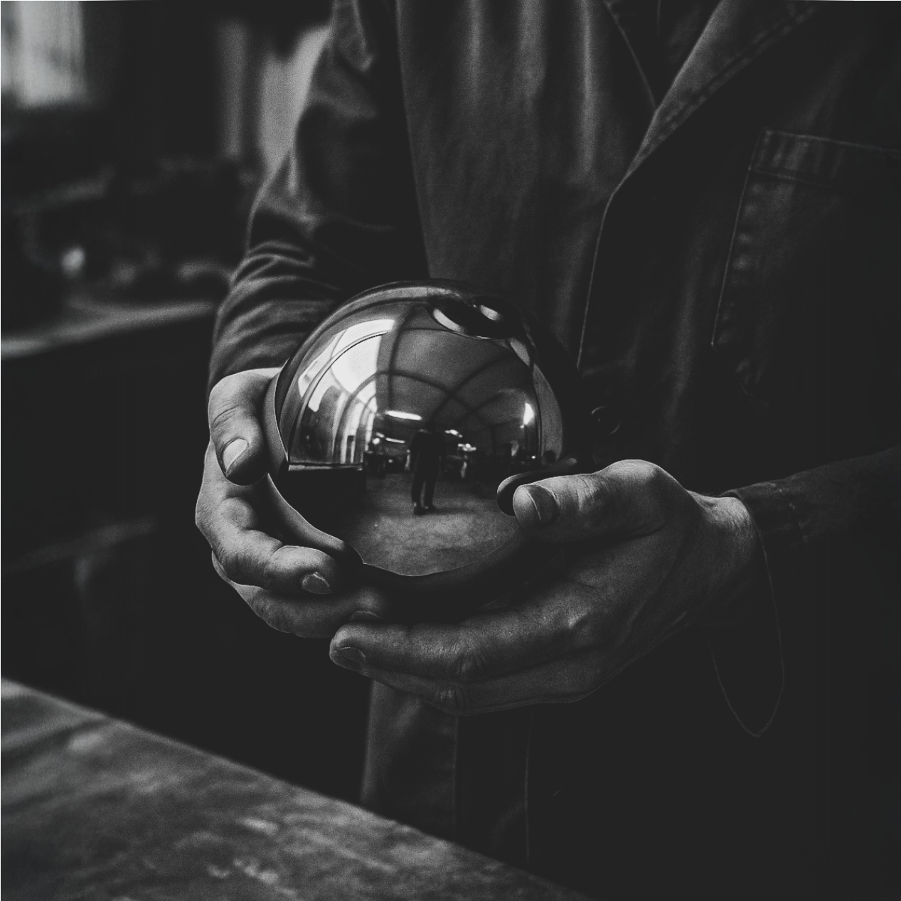 Stainless steel with a polished brass finish – Durable construction with a shiny gold plating, molded into a spherical shape and a conical base.