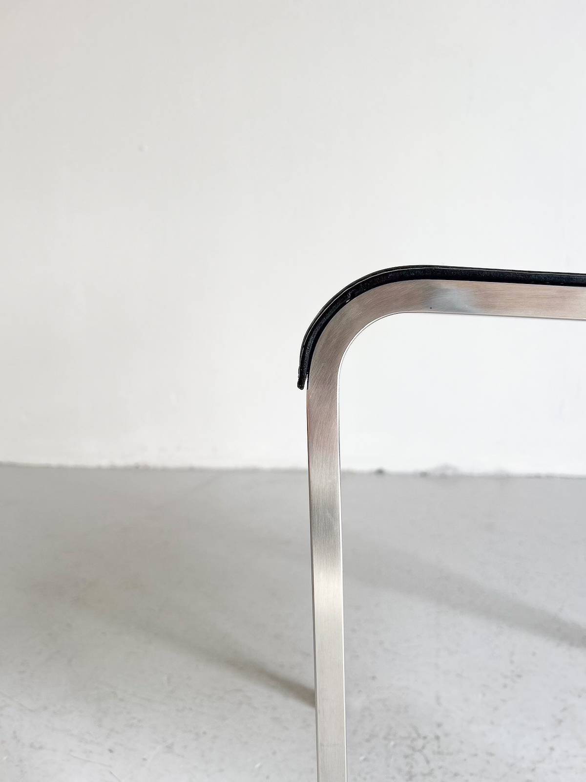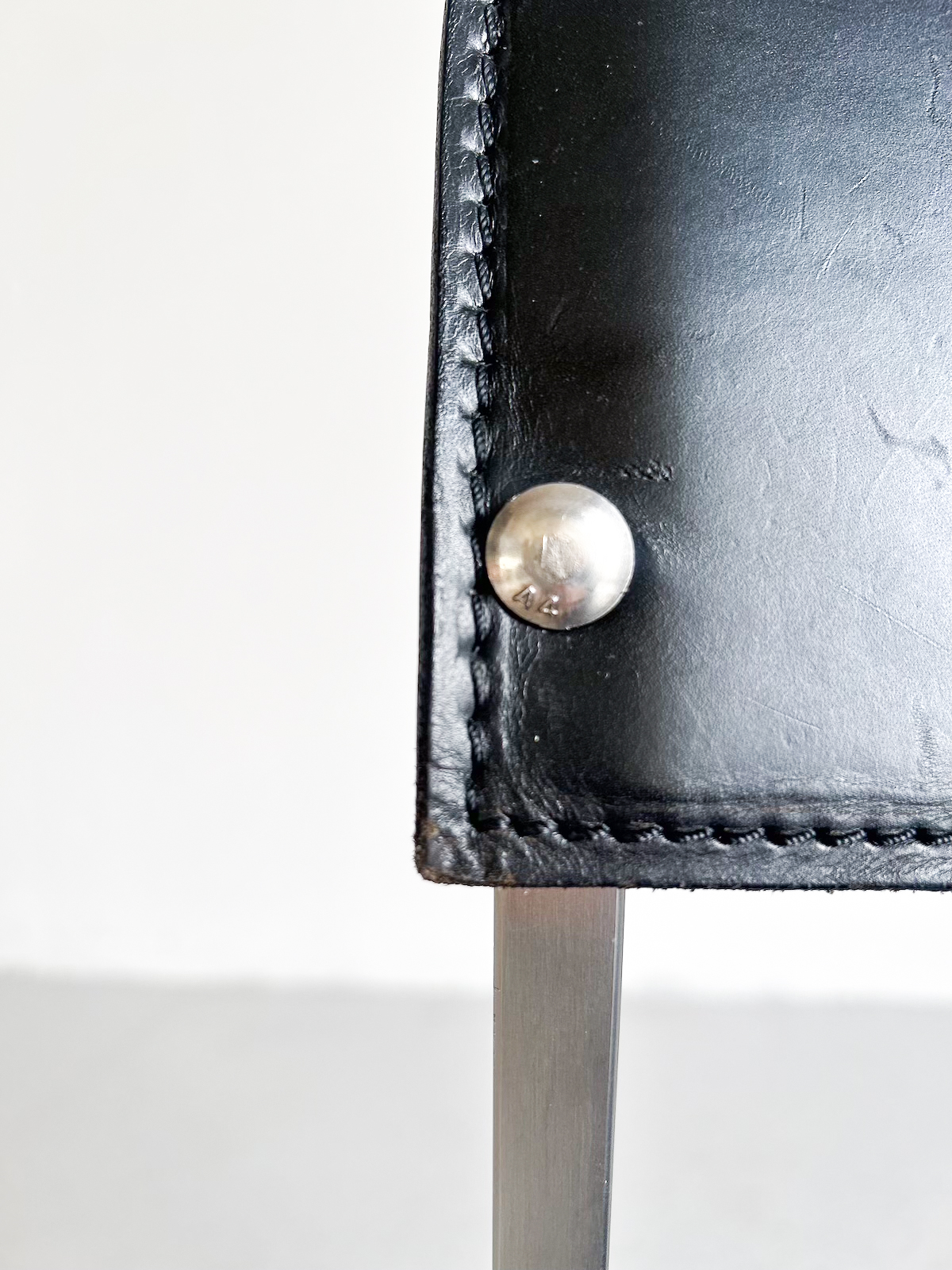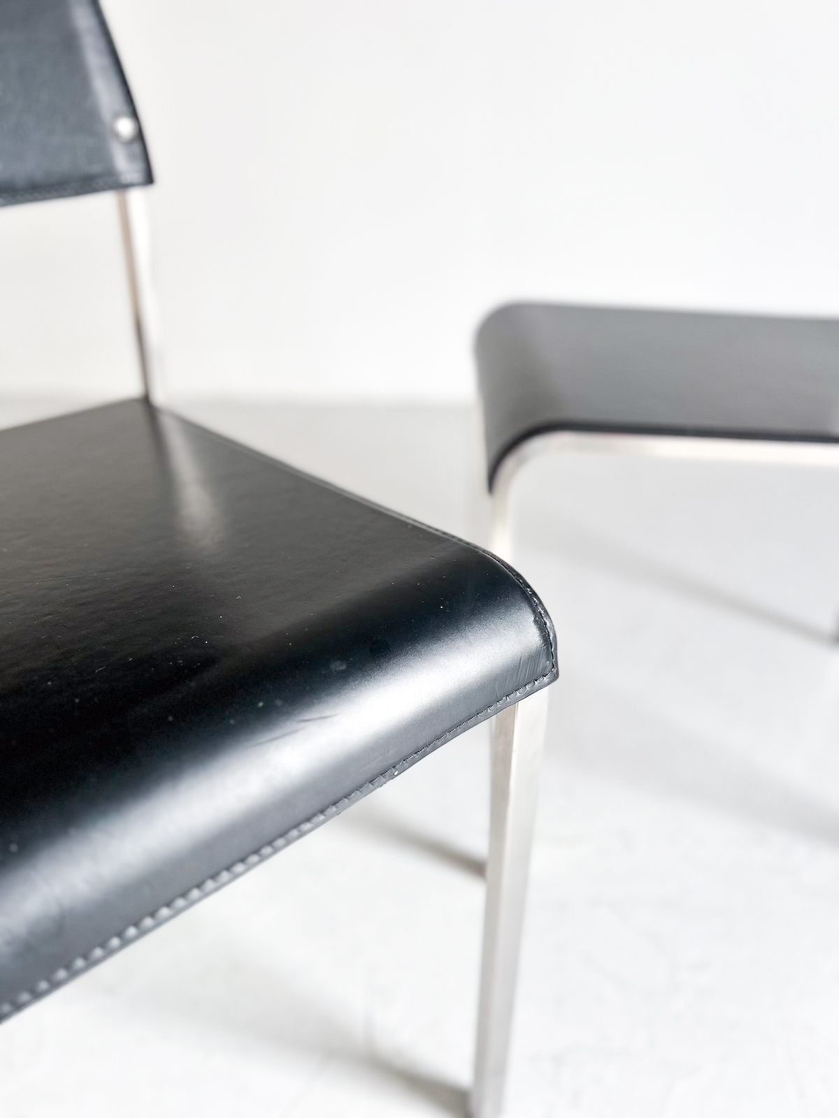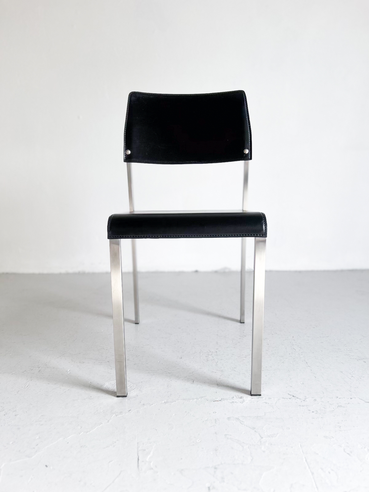 Svart leður og burstað stál. Staflanlegir.