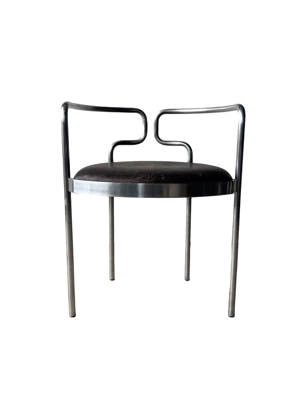 Model 9230 var upphaflega hannaður fyrir hið þekkta Kar kaffihús í Kaupmannahöfn, og er óvenjuleg blanda af einfaldleika og grafísku formi. Grindin er úr stálrörum og einkennist af skrautlegu formi í bakinu sem gefur stólnum skúlptúrlíkt útlit – einstakur hönnunargripur frá gullöld danskra húsgagna.