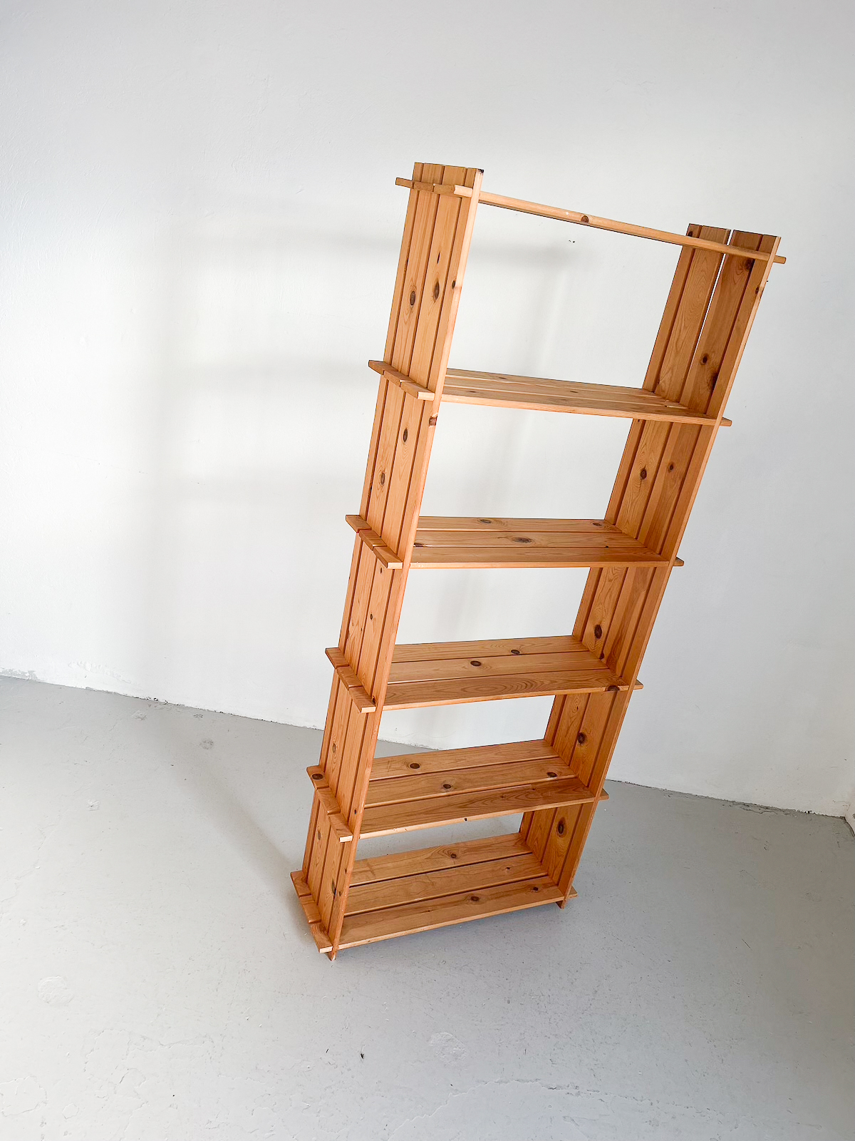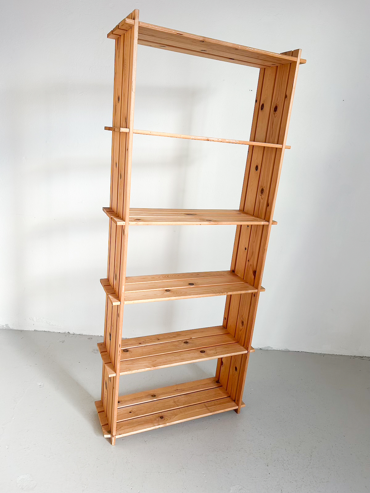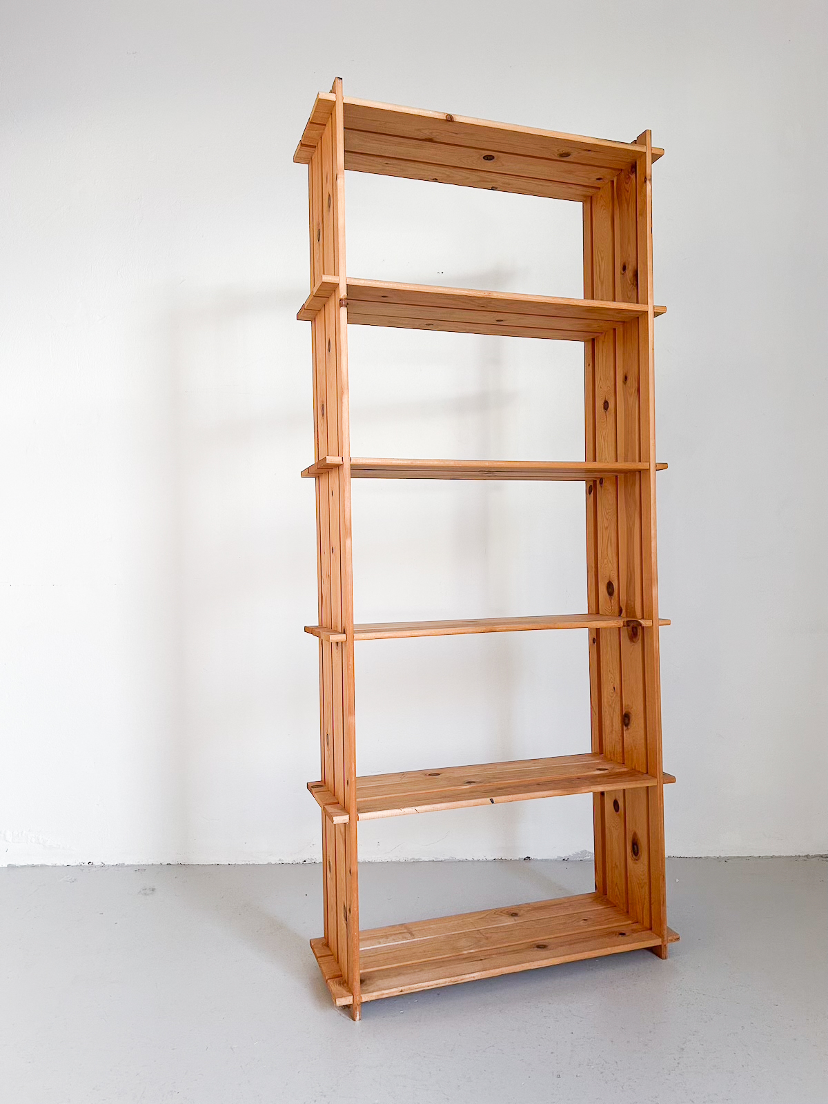 Stór og falleg vintage furuhilla með 6 hillum.