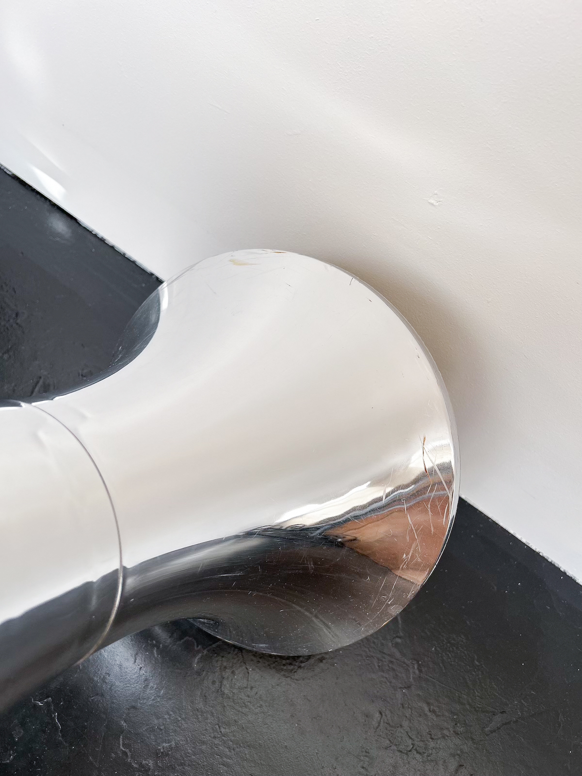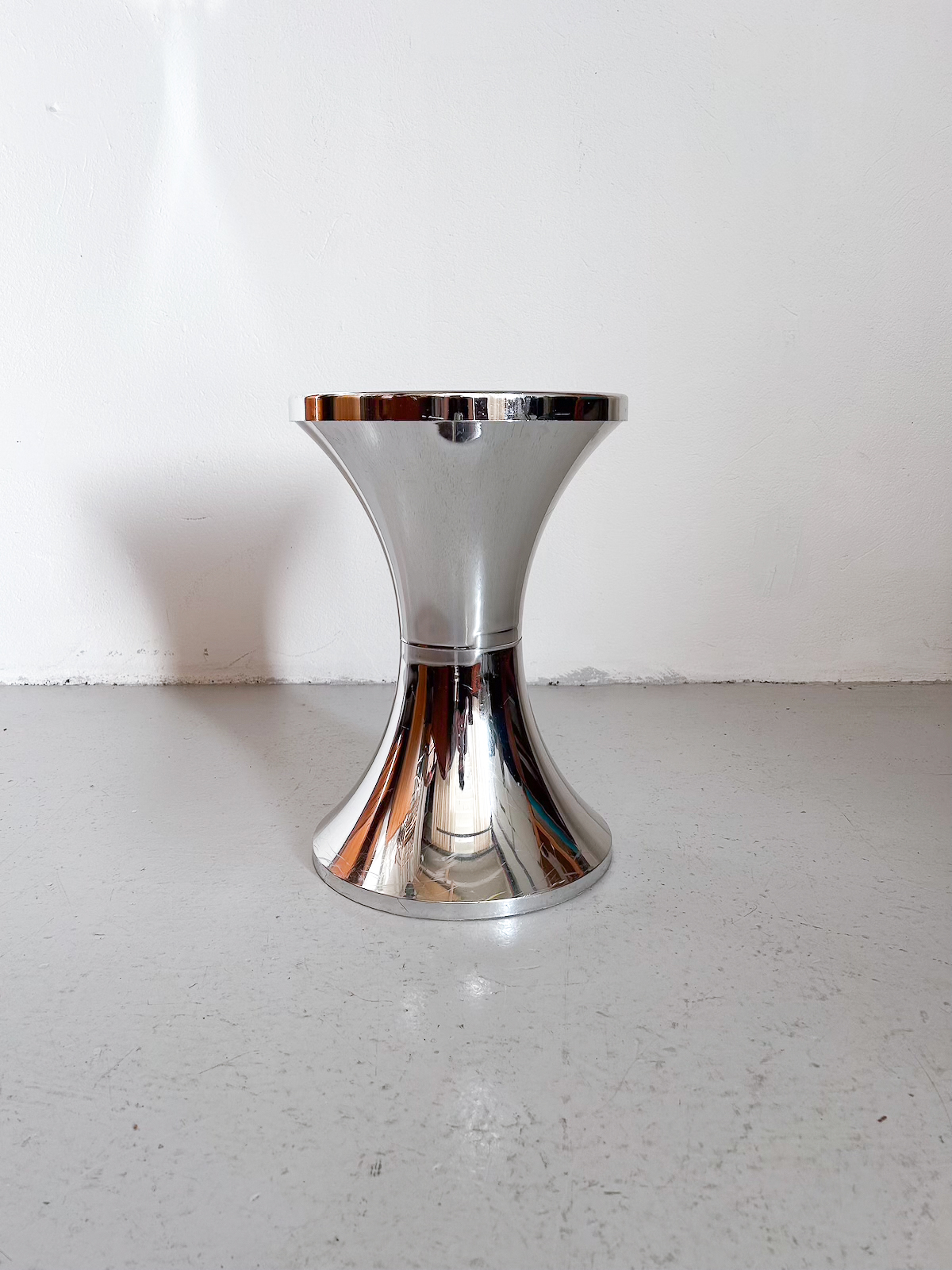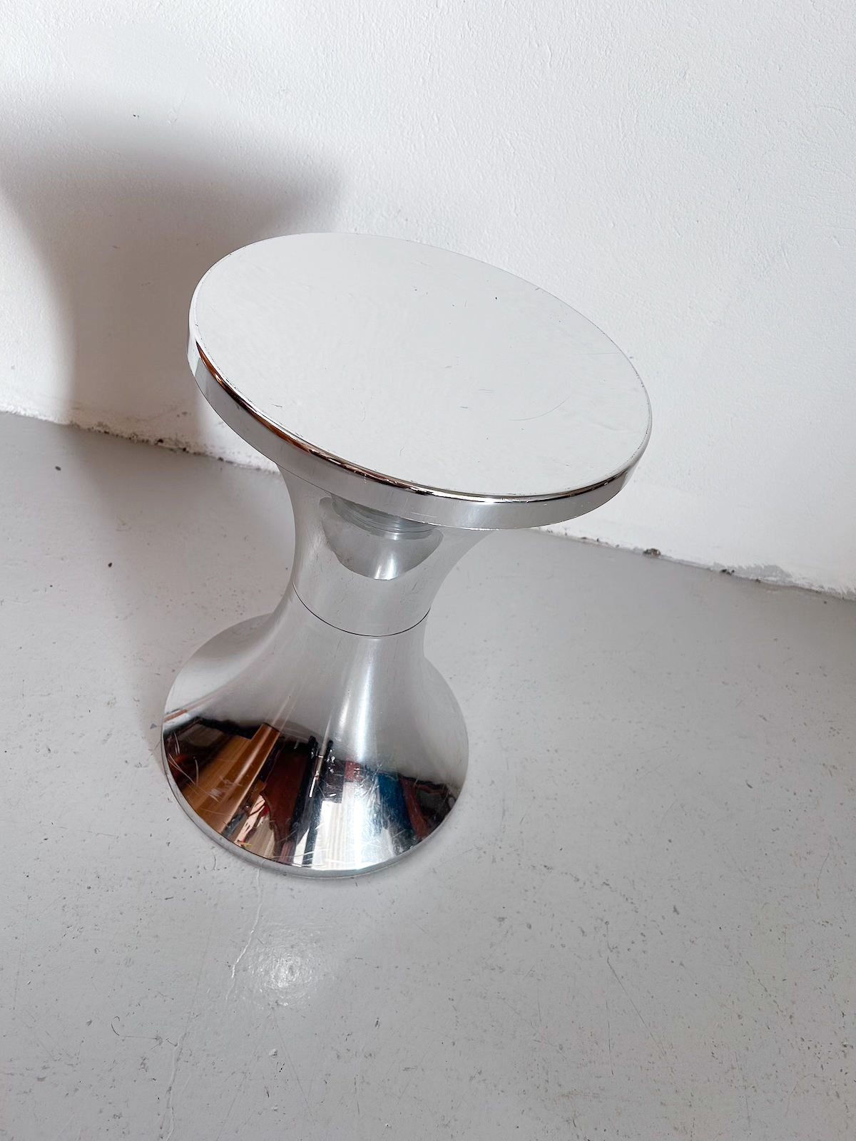 Klassískur Tam Tam kollur úr plasti í silfur lit. Er rispaður á fæti.