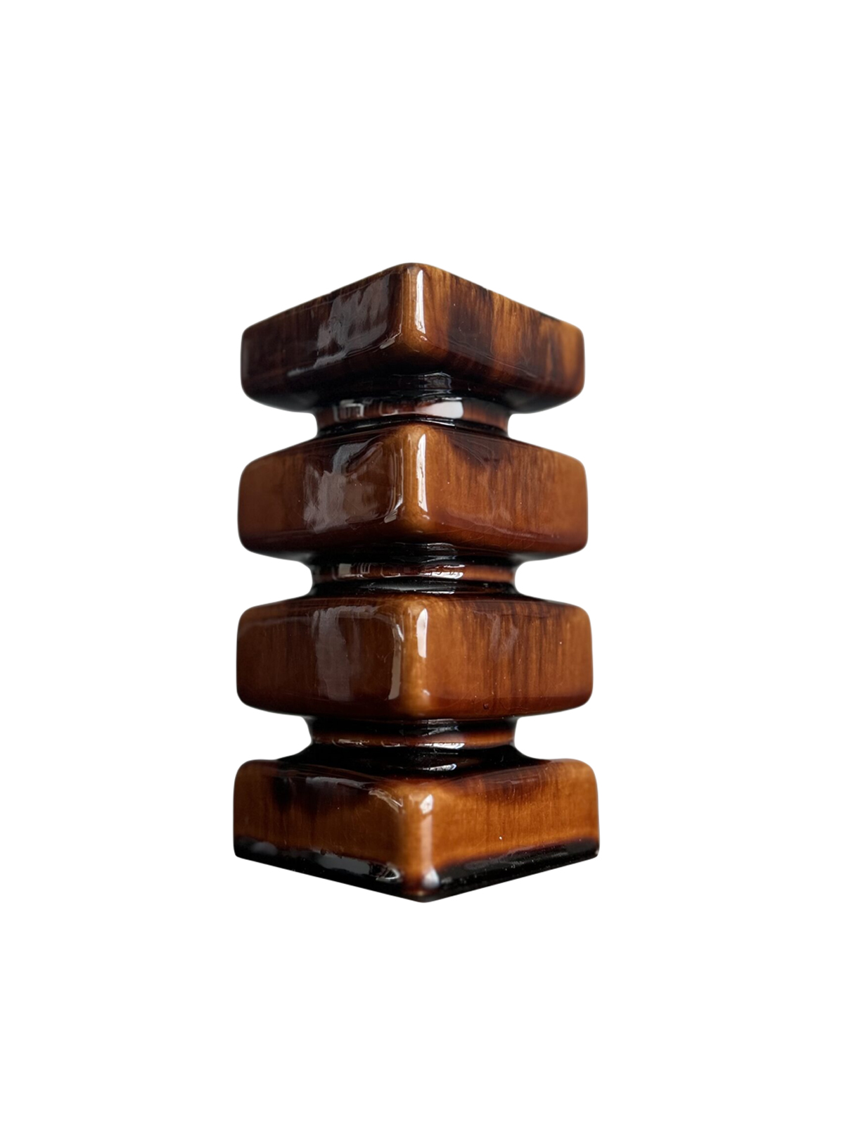 Skúlptúrískt keramikverk/vasi með brutaliskum áhrifum, gljáandi brúnn með svörtum dýptarblæ. Hluti af safnverðugri línu sem Zalloni hannaði fyrir Steuler í Þýskalandi á 7. áratugnum. Einstakur gripur.